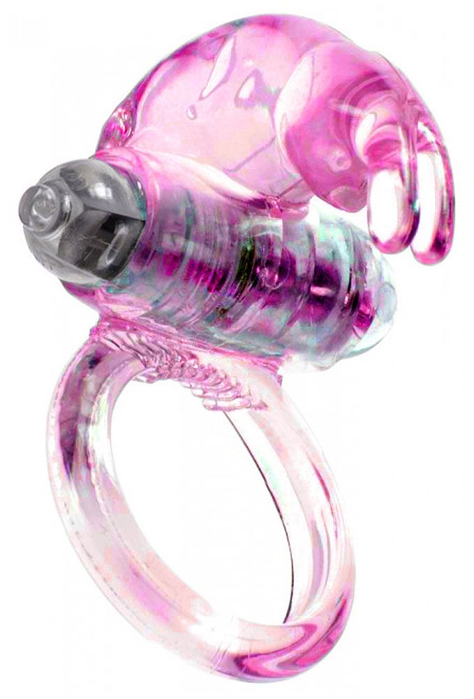 Розовое эрекционное виброкольцо с клиторальным зайчиком