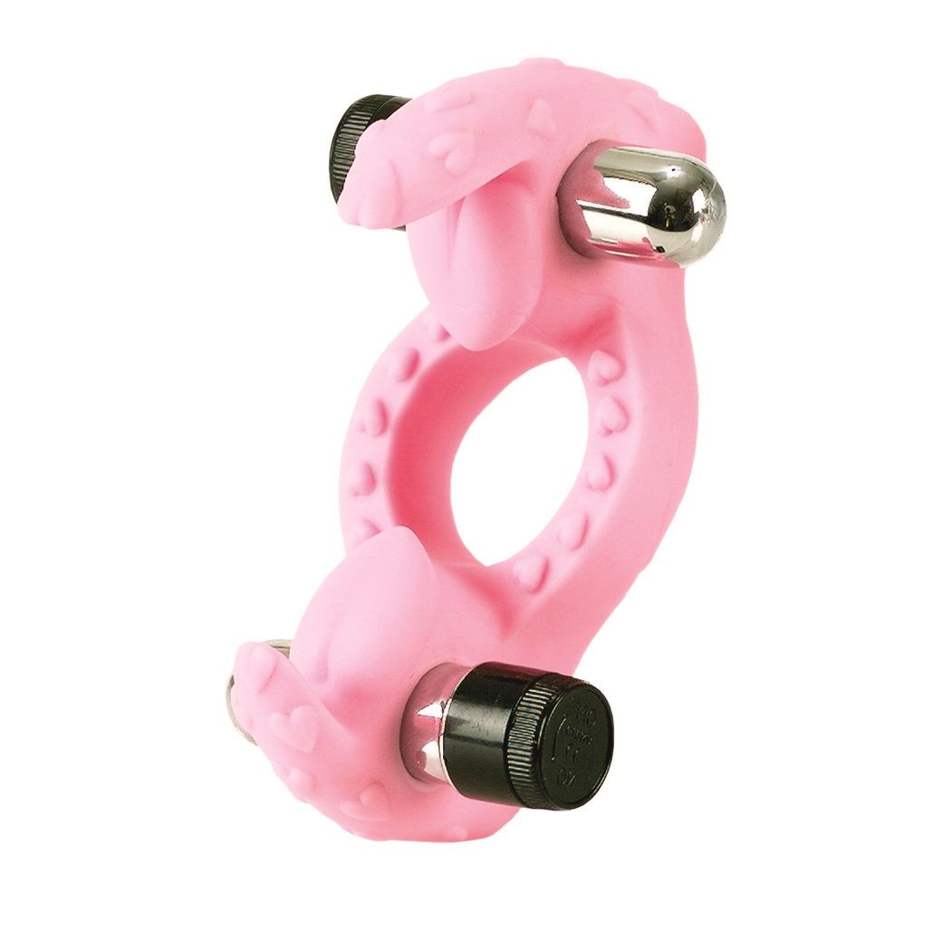 Любовное кольцо с двумя виброэлементами! Они устанавливаются в верхнюю и нижнюю часть кольца, тем самым вибрация будет доставлять удовольствие обоим партнерам. Мягкое колечко имеет специальные язычки для стимуляции клитора девушки. Батарейки в комплекте.