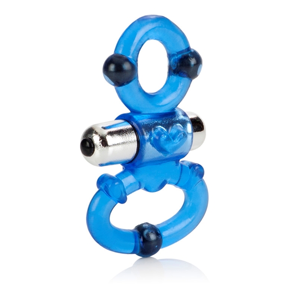 Синее эрекционное виброкольцо с петлей под мошонку Magnetic Power