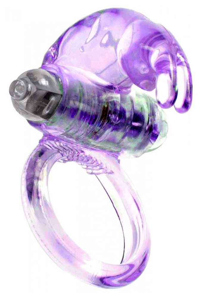 Сиреневое эрекционное виброкольцо с клиторальным зайчиком