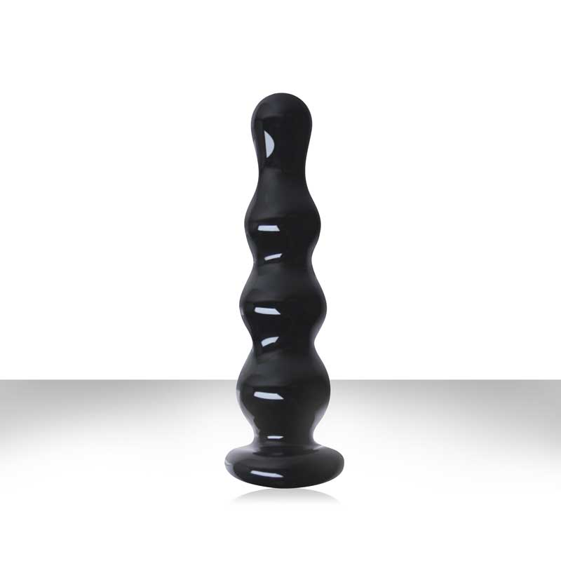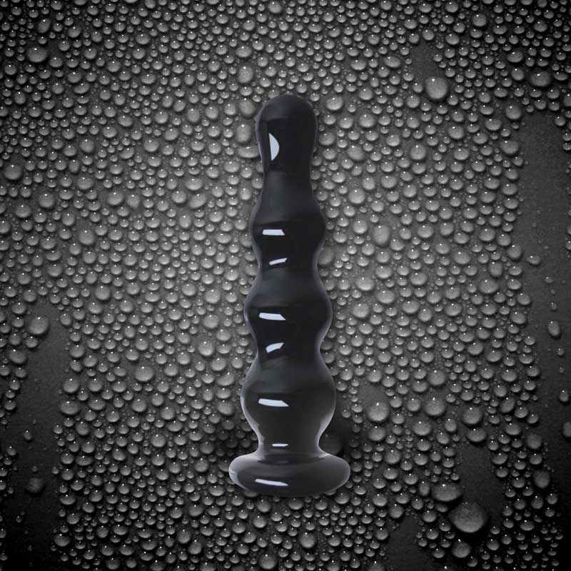 Черный стеклянный анальный стимулятор Crystal - Ripples