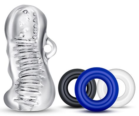 Купить Набор для мужчин Jerk Off: мастурбатор и 3 эрекционных кольца Blush Novelties по лучшей цене с доставкой - секс-шоп Ynunu.ru