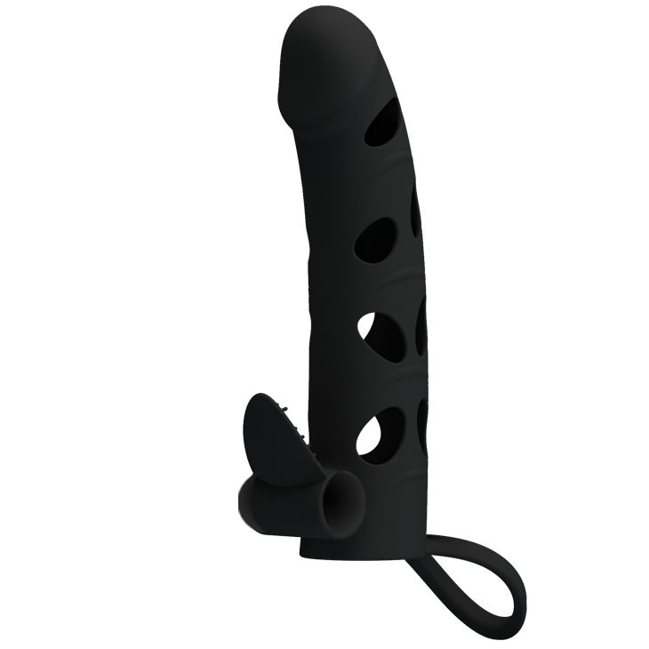 Насадка удлинитель с закрытой головкой, удлиняет член, с мягким кольцом под мошонку для задержки эякуляции и вибропулькой для пульсирующей стимуляции чувствительной женской зоны (клитора). Батарейки в комплекте.