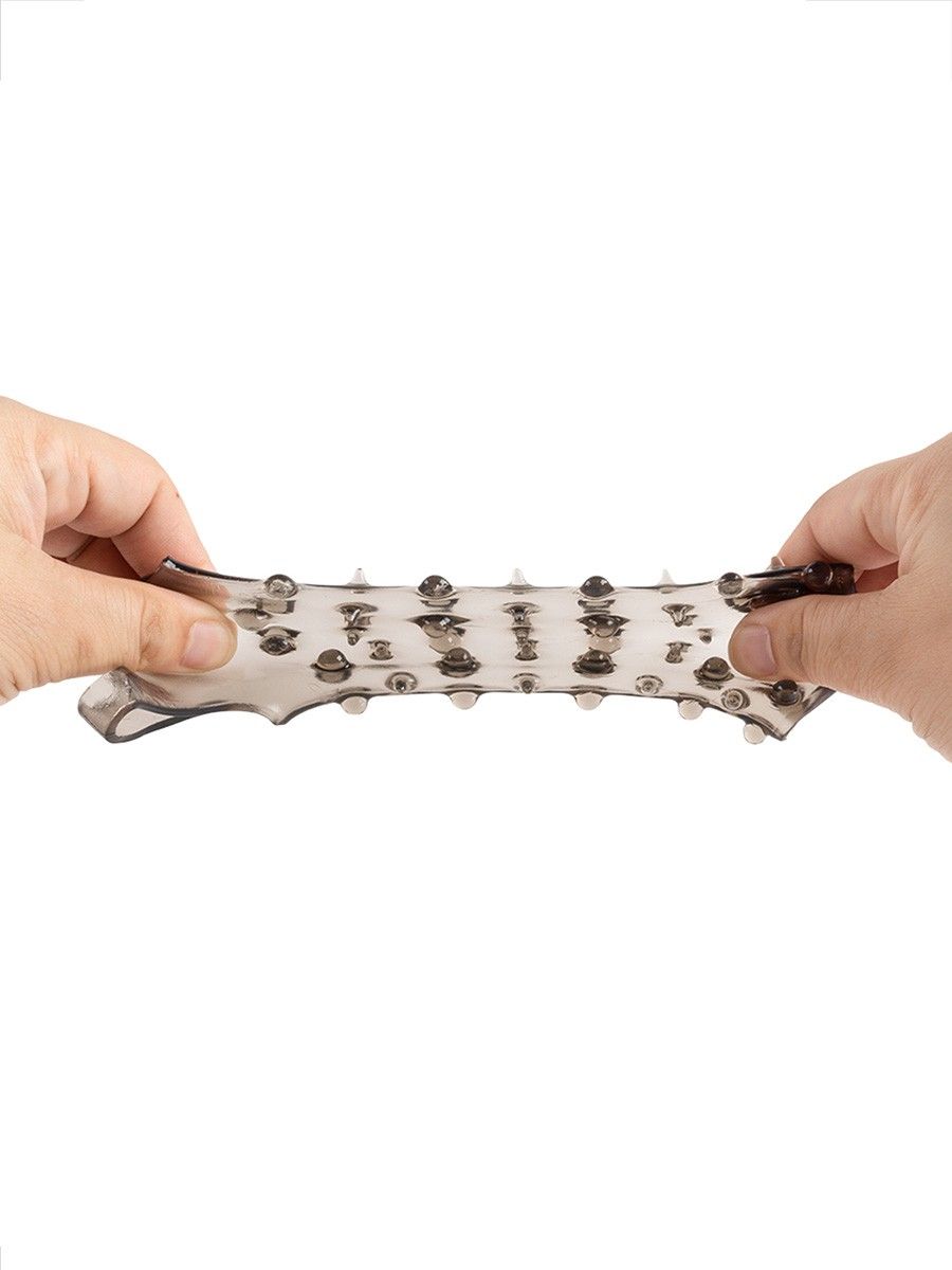 Дымчатая насадка на пенис с шипами и выпуклостями - 12 см.
