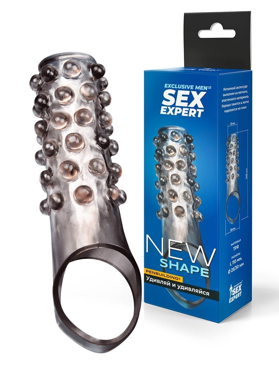 Купить Дымчатая насадка на пенис с выпуклостями - 11 см. Sex Expert по лучшей цене с доставкой - секс-шоп Ynunu.ru