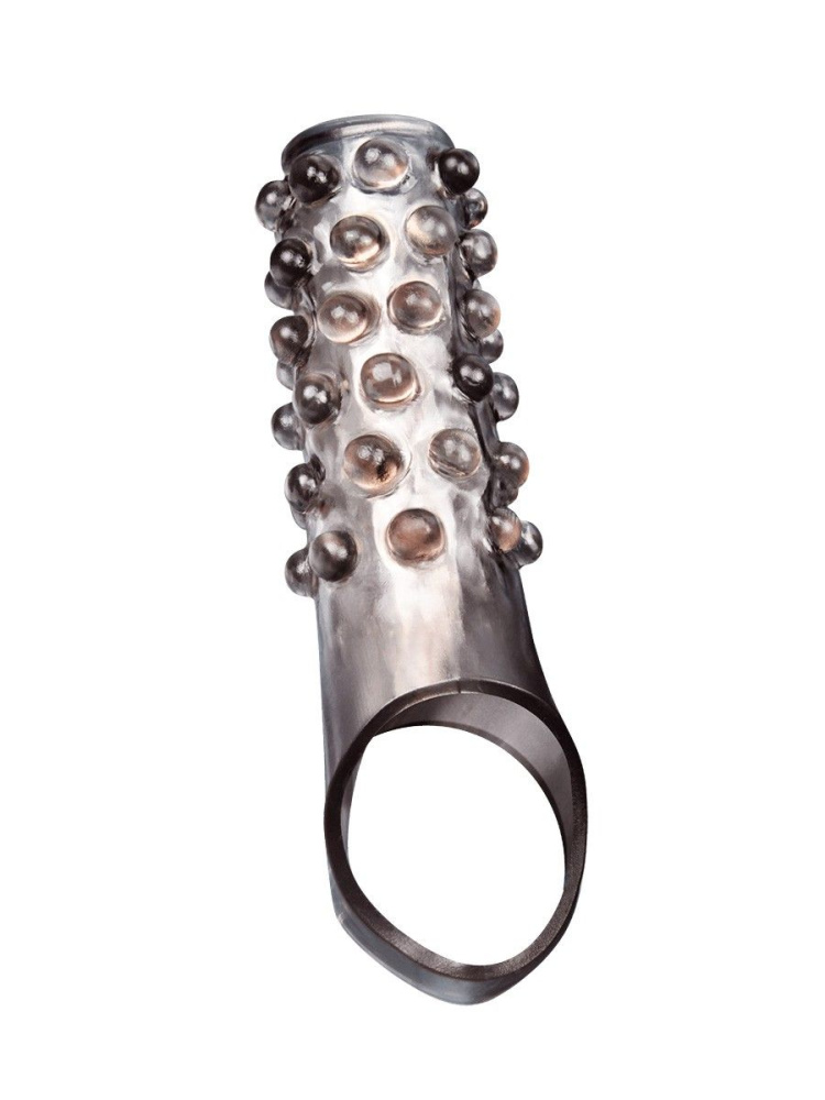 Дымчатая насадка на пенис с выпуклостями - 11 см.