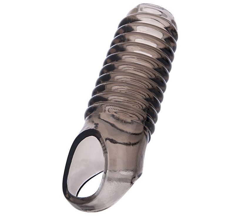 Купить Дымчатая насадка с рёбрышками и подхватом мошонки ToyFa XLover - 12,5 см. ToyFa по лучшей цене с доставкой - секс-шоп Ynunu.ru