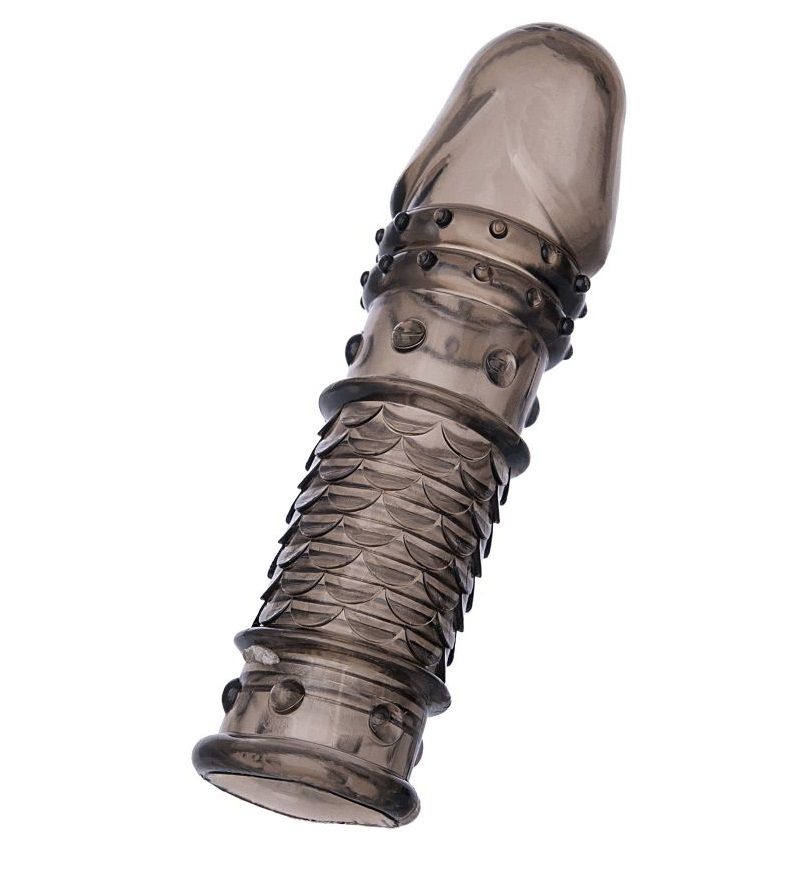 Купить Дымчатая закрытая насадка ToyFa XLover с чешуйками и пупырышками - 13,5 см. ToyFa по лучшей цене с доставкой - секс-шоп Ynunu.ru