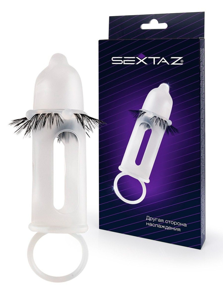 Купить Эластичная насадка на пенис с подхватом мошонки и стимулирующими «ресничками» Sextaz по лучшей цене с доставкой - секс-шоп Ynunu.ru