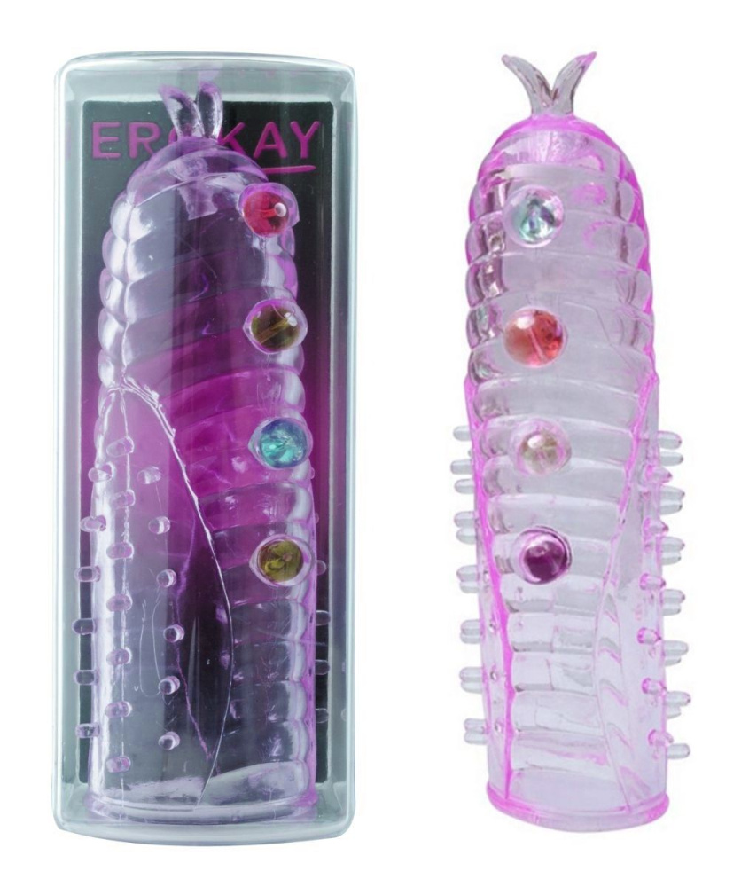 Купить Фиолетовая насадка на пенис с усиками на головке и бусинами Erokay по лучшей цене с доставкой - секс-шоп Ynunu.ru