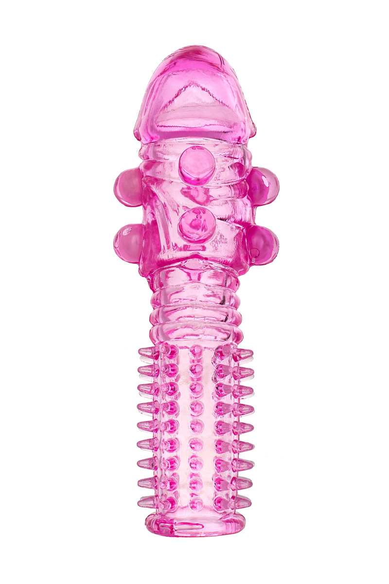Купить Гелевая розовая насадка с шариками и шипами - 14 см. Toyfa Basic по лучшей цене с доставкой - секс-шоп Ynunu.ru