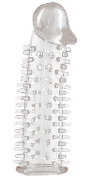 Прозрачная насадка на половой член с закрытой головкой и шипами - 12,5 см.