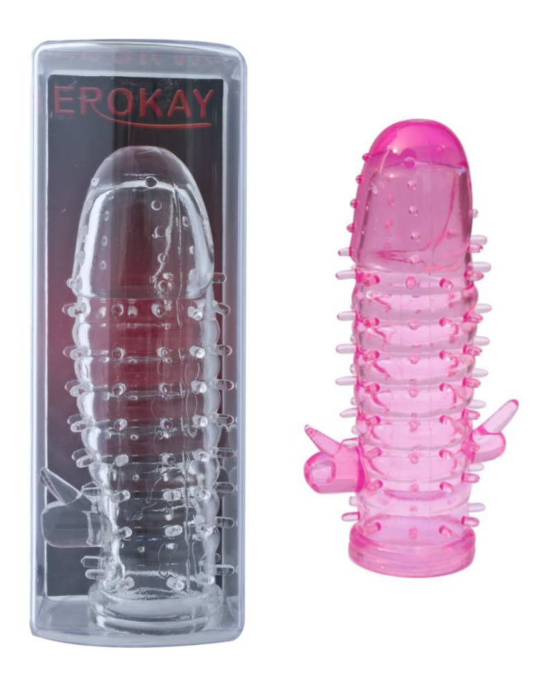 Купить Розовая насадка на пенис Clitor Lover с клиторальным отростком Erokay по лучшей цене с доставкой - секс-шоп Ynunu.ru