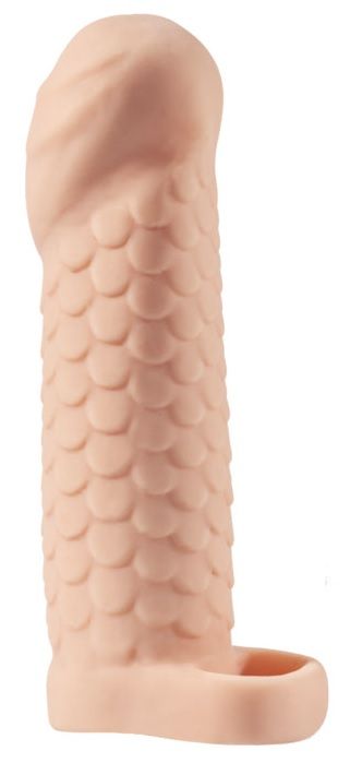 Телесная рельефная насадка-удлинитель KLEON с подхватом - 15 см.