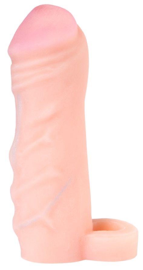 Насадка удлиняющая с кольцом, выполненная из реалистичного материала Softskin. Благодаря своей эластичности легко растягивается и одевается на член, увеличивая его в длину. Кольцо для мошонки отлично фиксирует насадку и продлевает удовольствие во время полового акта. Прирост длины - 3 см.
