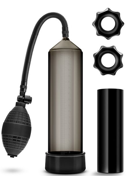 Вакуумный массажер для мужчин. Создает хорошую степень разряжения в колбе за счет удобного ручного механизма выкачивания воздуха. В комплект входят 2 эрекционных кольца одного диаметра для увеличения притока крови в момент вакуумного массажа, а также компактный мастурбатор. Длина помпы - 24 см., рабочая длина - 20 см., диаметр - 5,7 см.