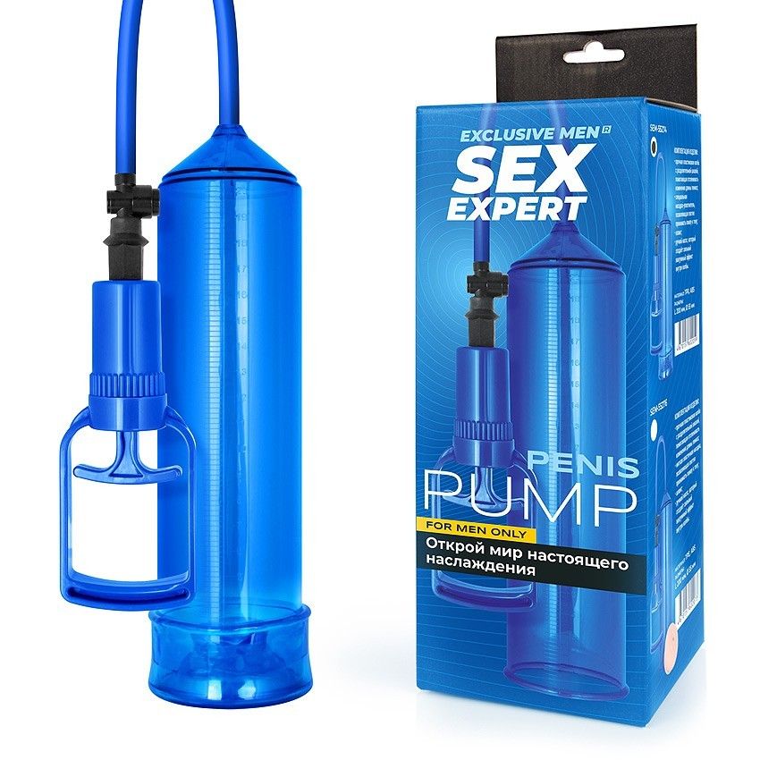 Купить Синяя вакуумная помпа с уплотнительной насадкой Sex Expert по лучшей цене с доставкой - секс-шоп Ynunu.ru