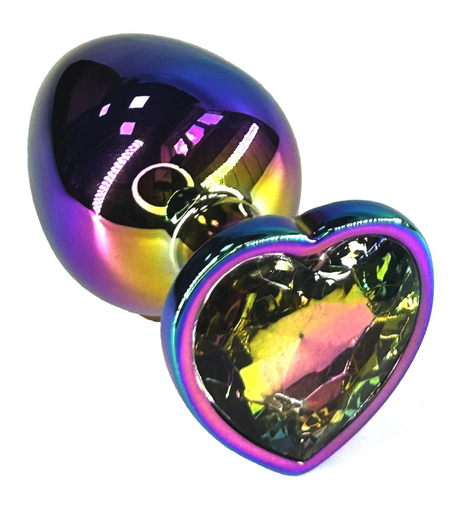 Купить Анальная пробка цвета неохром с радужным кристаллом в форме сердца - 10 см. Kanikule по лучшей цене с доставкой - секс-шоп Ynunu.ru