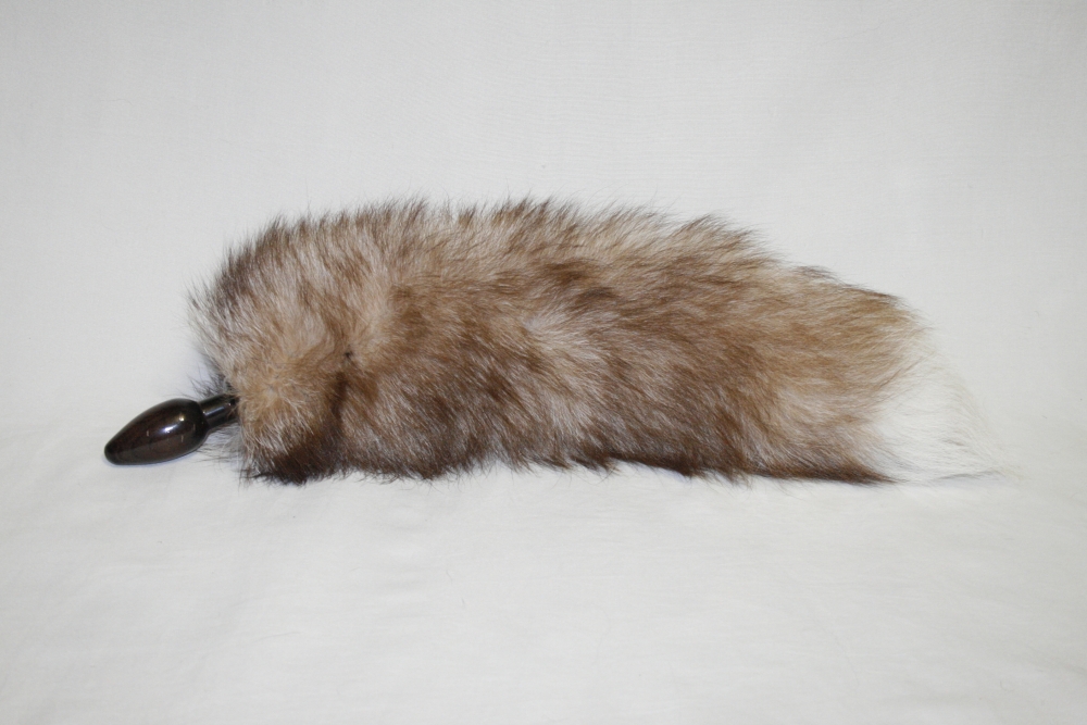 Черная анальная пробка с бежевым лисьим хвостом
