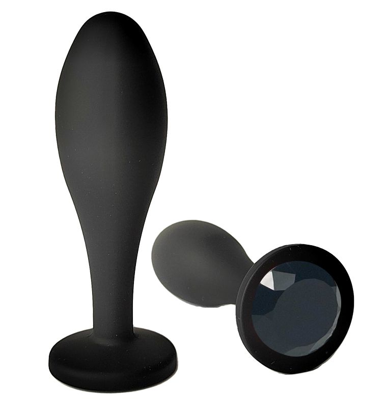 Черная анальная пробка с черным кристаллом - 7,7 см.