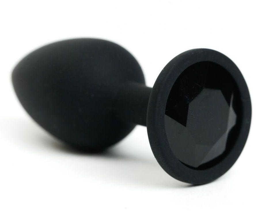Черная анальная пробка с черным стразом - 7,6 см.