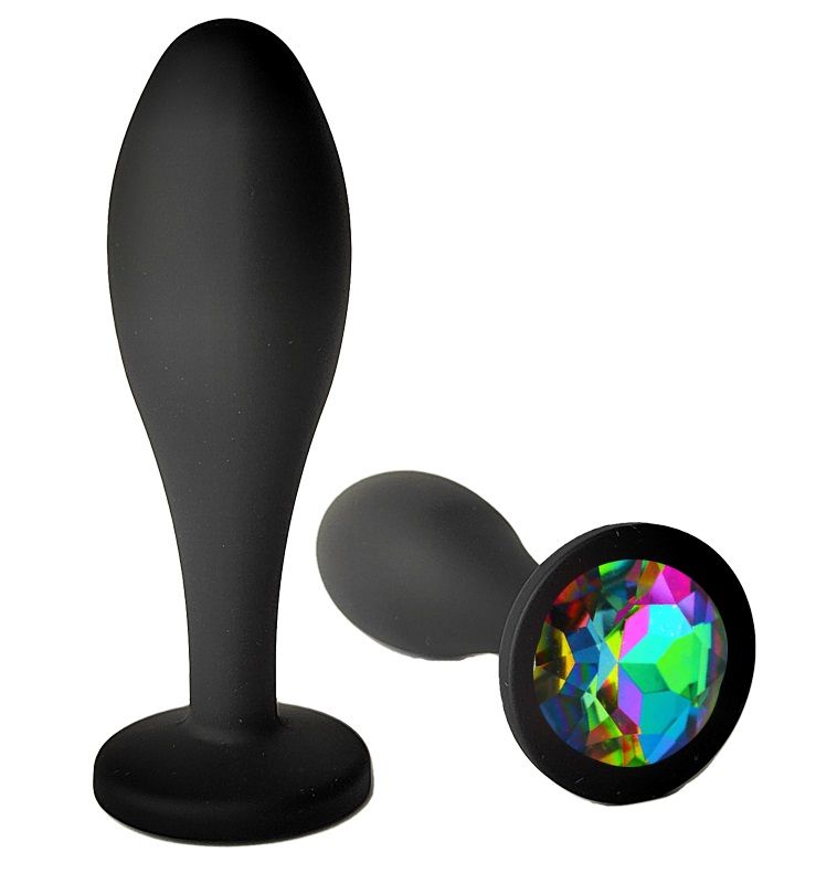 Черная анальная пробка с радужным кристаллом - 7,7 см.