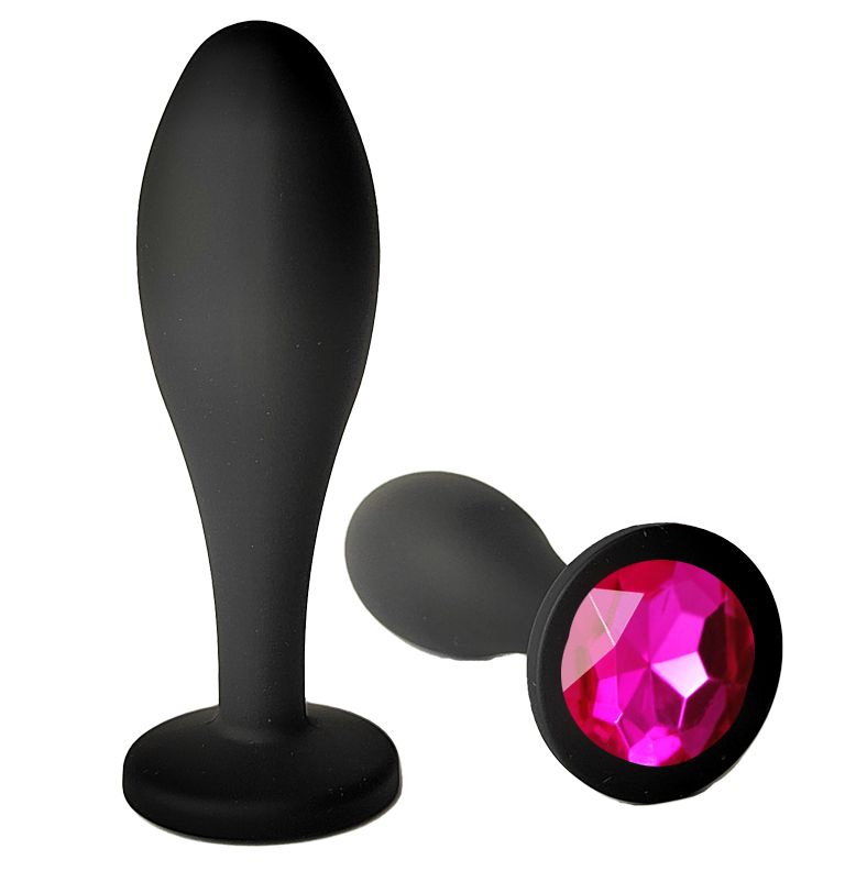 Черная анальная пробка с розовым кристаллом - 11 см.