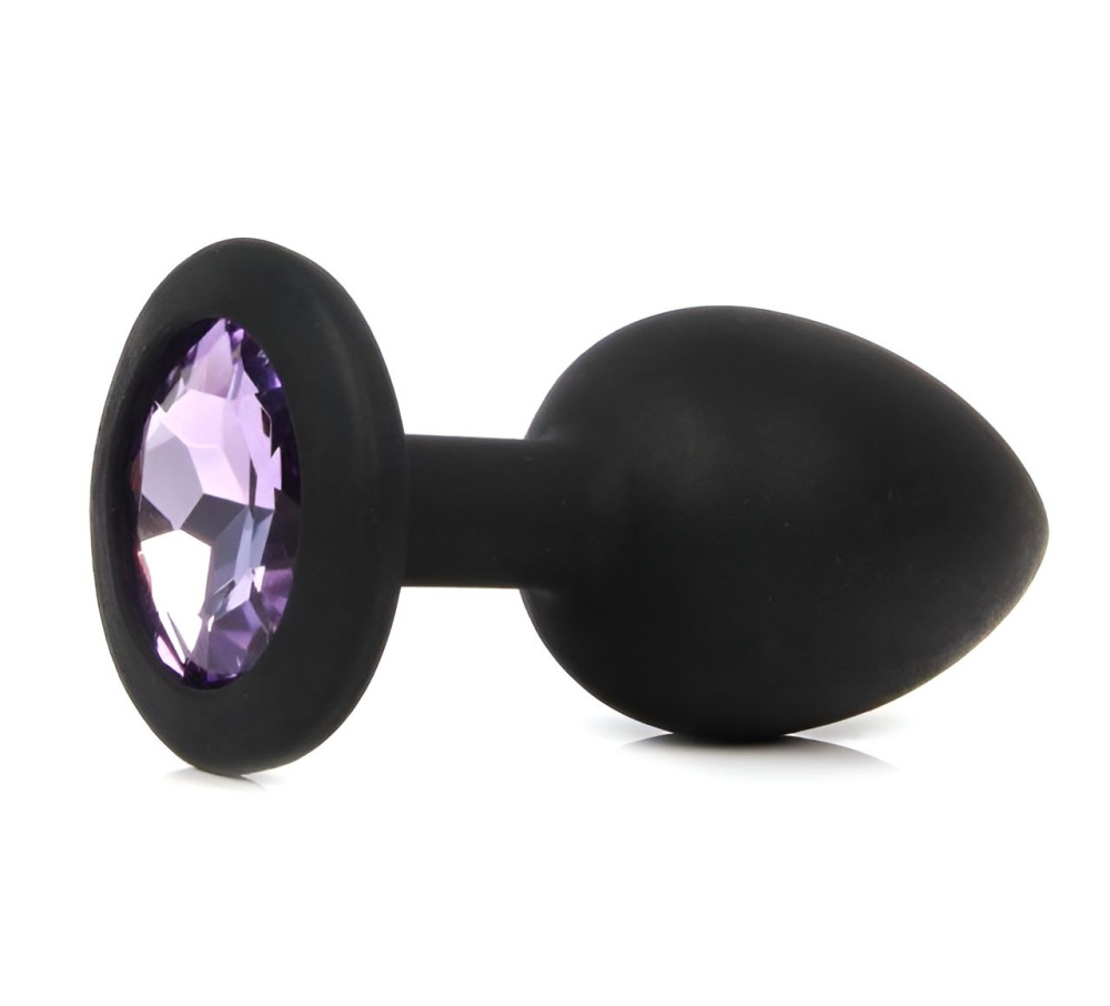 Черная анальная пробка с сиреневым кристаллом - 7,3 см.