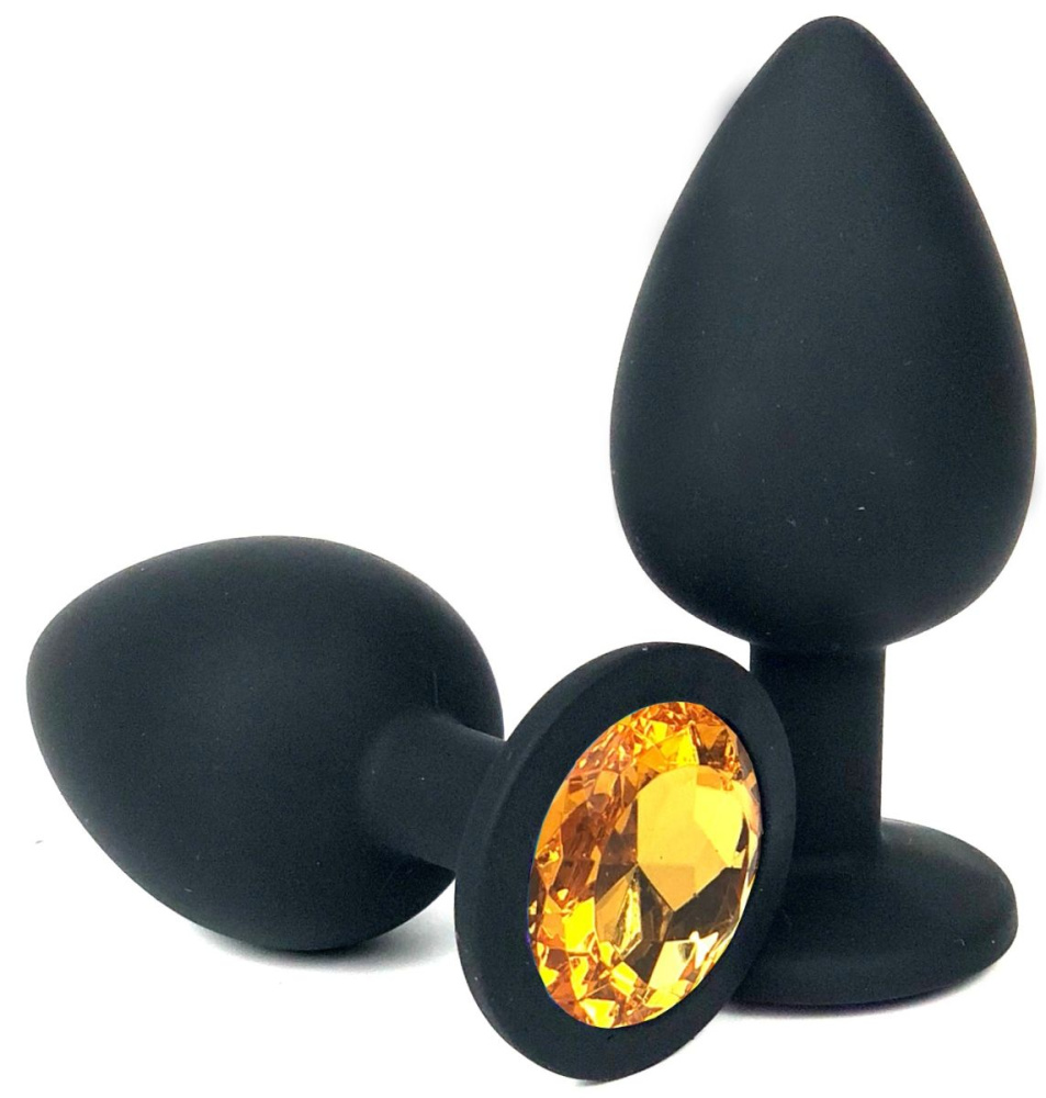 Купить Черная силиконовая анальная пробка с оранжевым стразом - 10,5 см. Vandersex по лучшей цене с доставкой - секс-шоп Ynunu.ru