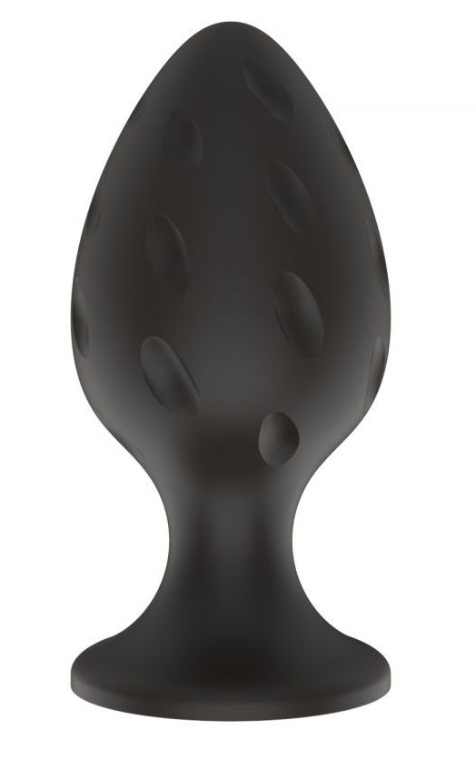 Купить Черная средняя силиконовая анальная пробка с рельефом в виде углублений Свободный ассортимент по лучшей цене с доставкой - секс-шоп Ynunu.ru