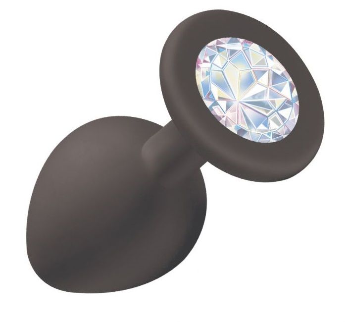 Купить Чёрная анальная пробка Emotions Cutie Medium с прозрачным кристаллом - 8,5 см. Lola Games по лучшей цене с доставкой - секс-шоп Ynunu.ru
