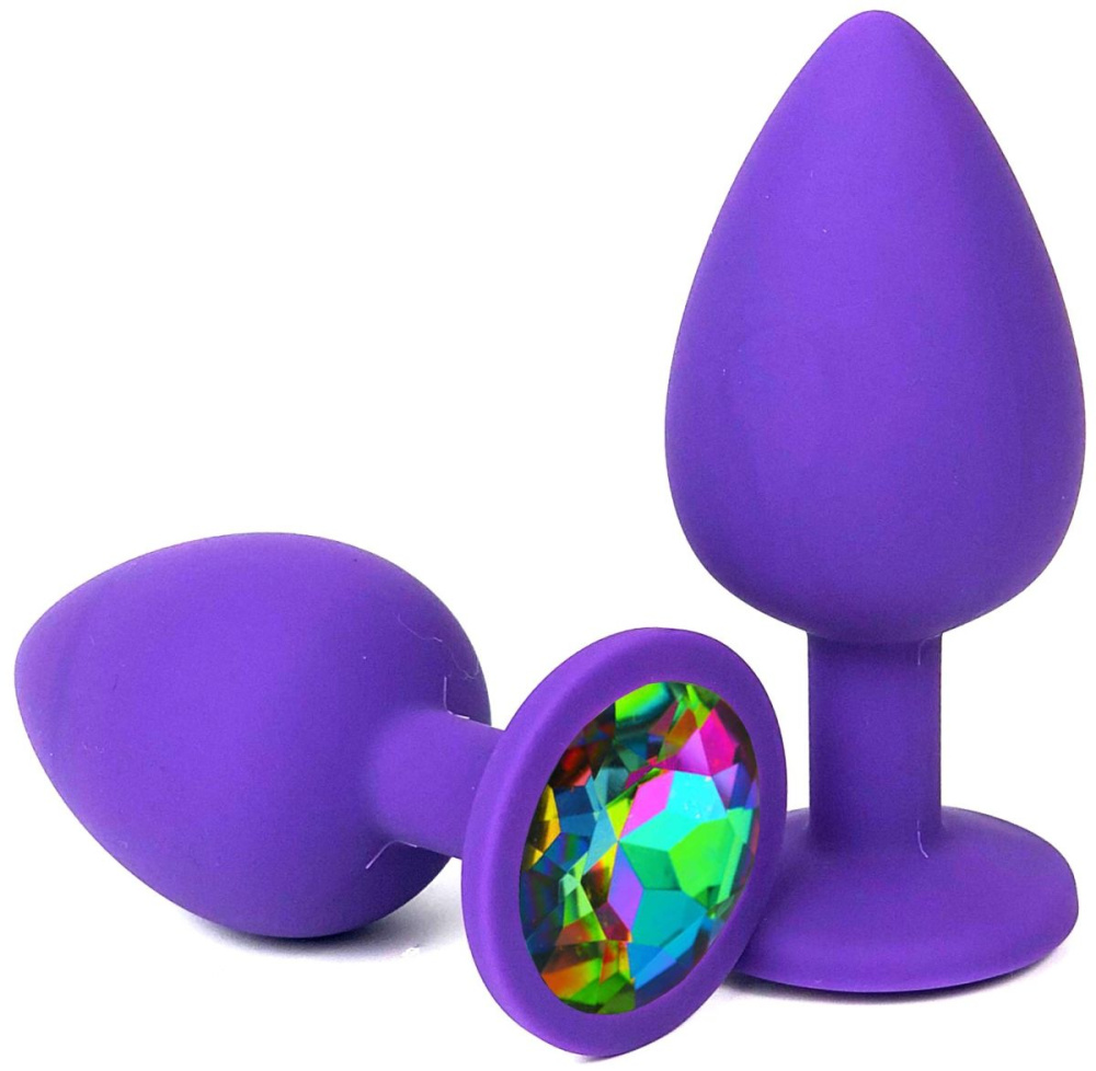 Купить Фиолетовая силиконовая пробка с разноцветным кристаллом - 10,5 см. Vandersex по лучшей цене с доставкой - секс-шоп Ynunu.ru