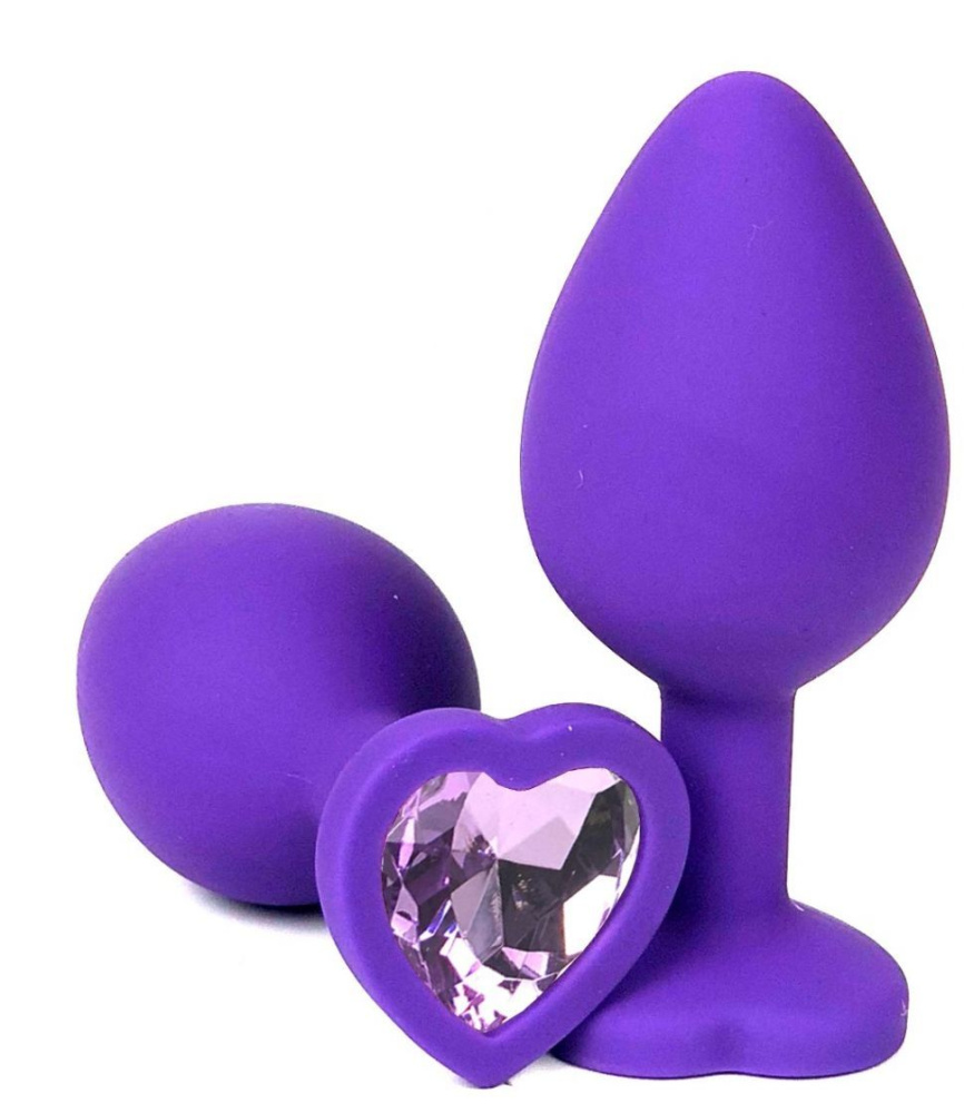 Фиолетовая силиконовая пробка с сиреневым кристаллом-сердечком - 9,5 см.