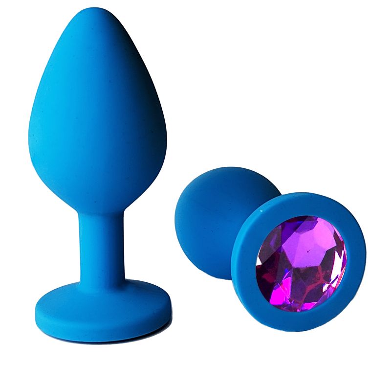 Голубая анальная пробка с фиолетовым кристаллом - 9,5 см.