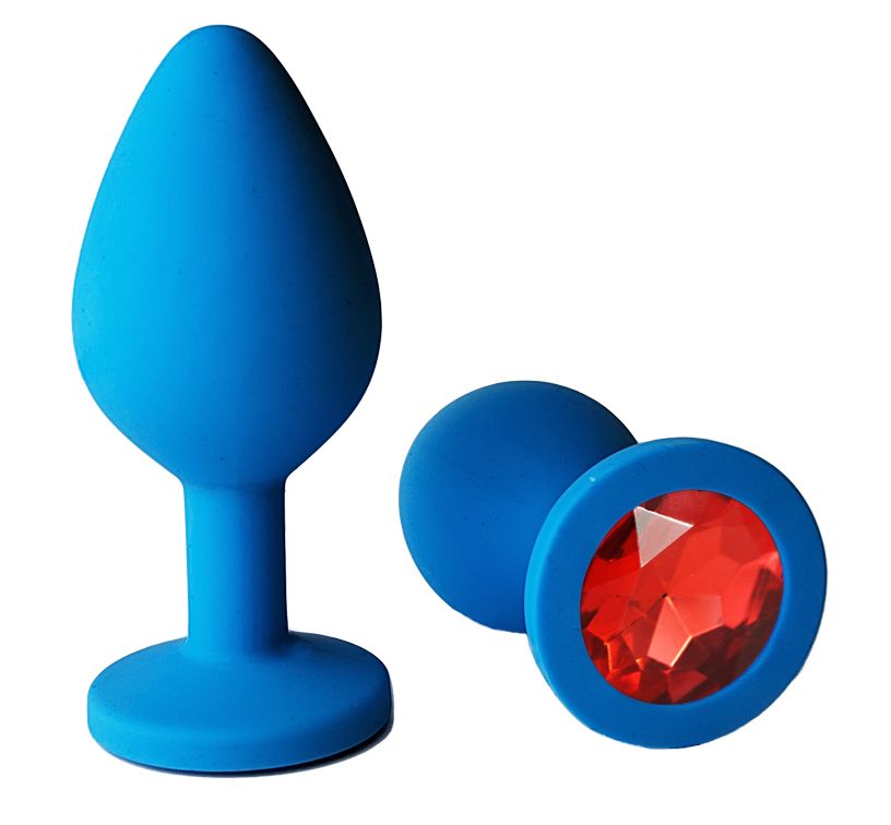 Голубая анальная пробка с красным кристаллом - 7 см.