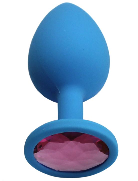 Голубая анальная пробка с розовым кристаллом - 8,4 см.