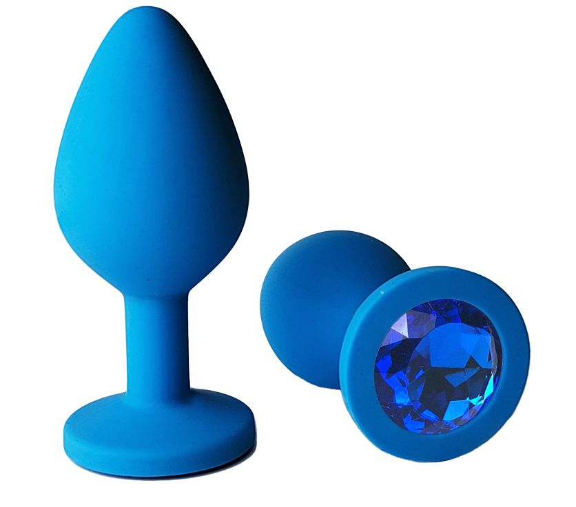 Голубая анальная пробка с синим кристаллом - 7 см.