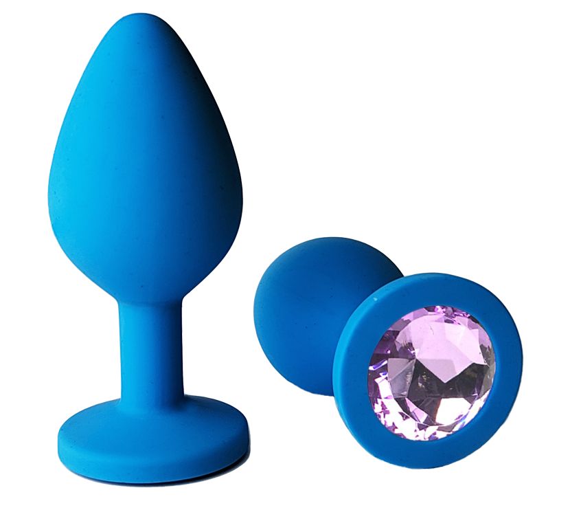 Голубая анальная пробка с сиреневым кристаллом - 8 см.