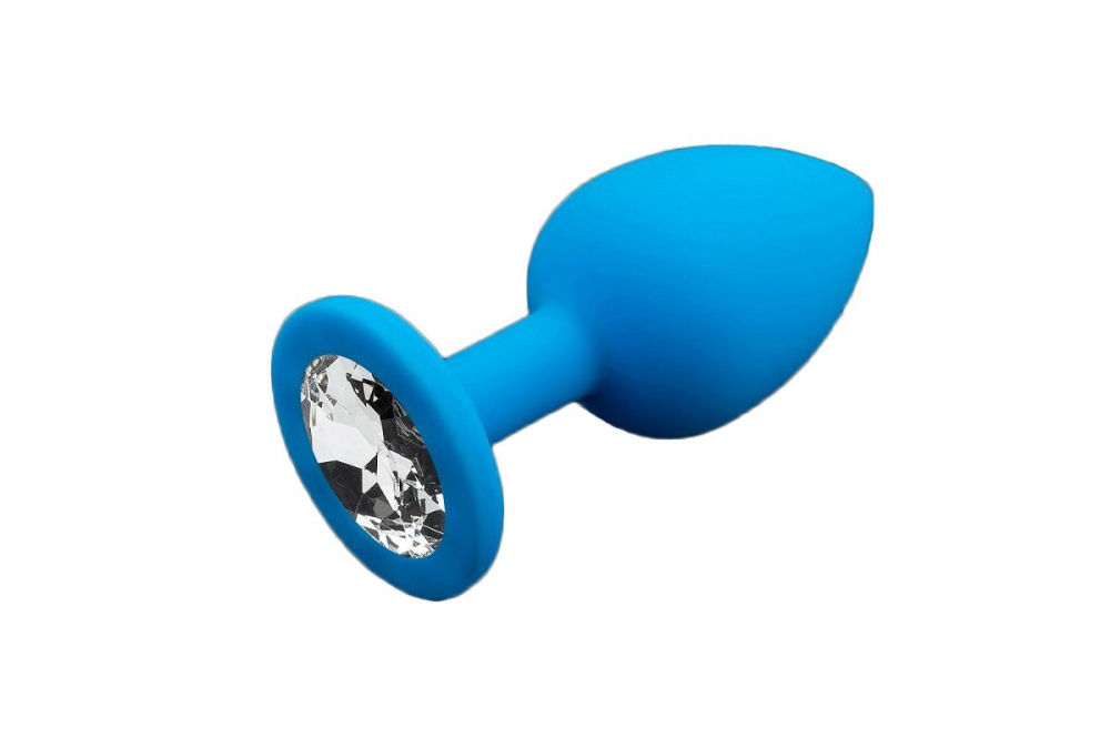 Купить Маленькая голубая силиконовая пробка с прозрачным кристаллом - 7,5 см. Пикантные штучки по лучшей цене с доставкой - секс-шоп Ynunu.ru