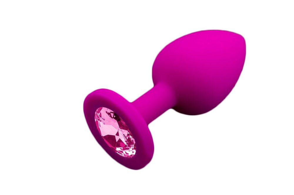 Маленькая розовая силиконовая пробка с розовым кристаллом - 7,5 см.