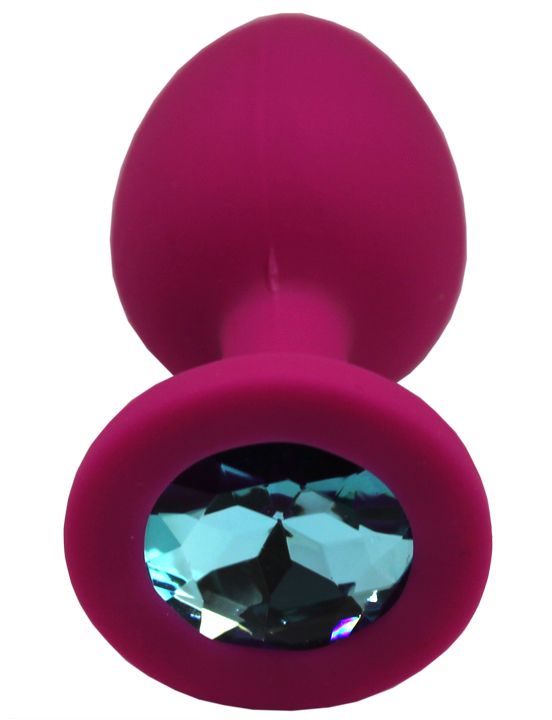 Малиновая анальная пробка с голубым кристаллом - 7,4 см.