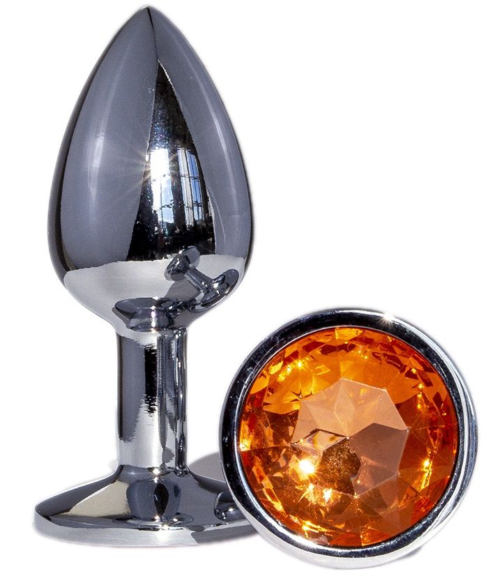 Купить Металлическая анальная втулка с оранжевым кристаллом - 7,2 см. OYO по лучшей цене с доставкой - секс-шоп Ynunu.ru