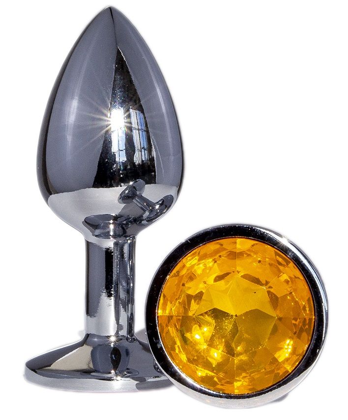 Купить Металлическая анальная втулка с желтым кристаллом - 7,2 см. OYO по лучшей цене с доставкой - секс-шоп Ynunu.ru