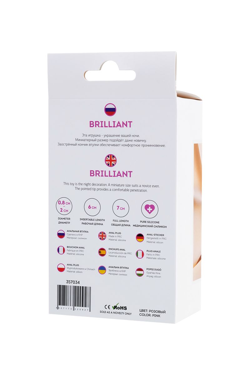 Анальная втулка Brilliant. Эта игрушка - украшение вашей ночи. Миниатюрный размер подойдёт даже новичку. Заострённый кончик втулки обеспечивает комфортное проникновение. Рабочая длина - 6 см.