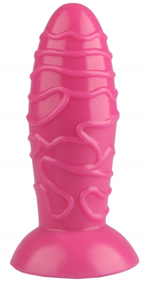 Купить Розовая анальная втулка с венками - 17,5 см. Rubber Tech Ltd по лучшей цене с доставкой - секс-шоп Ynunu.ru