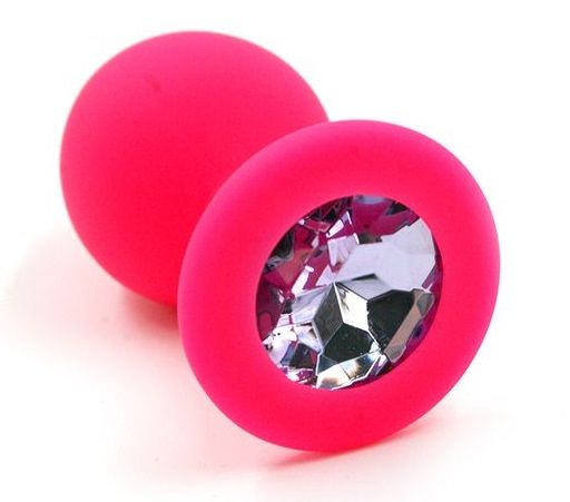 Розовая силиконовая анальная пробка с розовым кристаллом - 7 см.