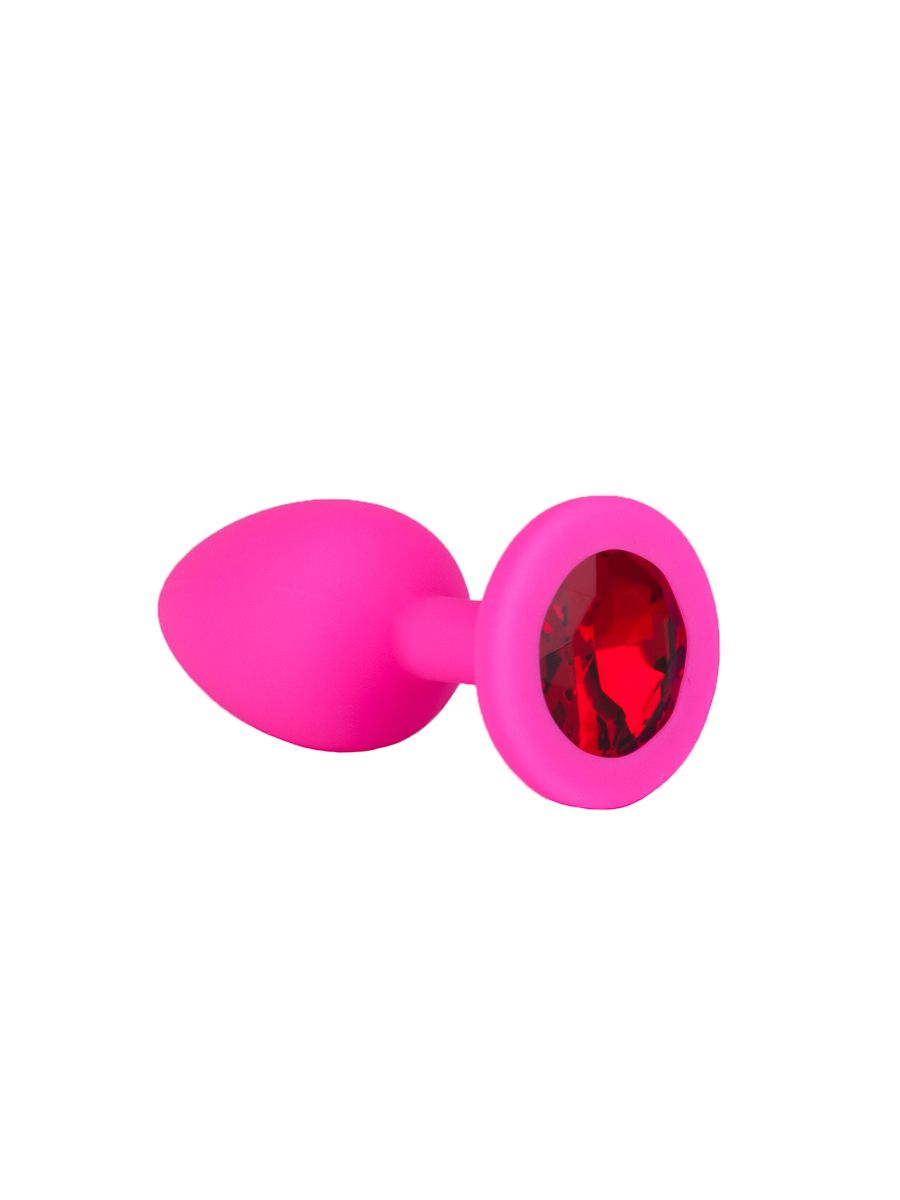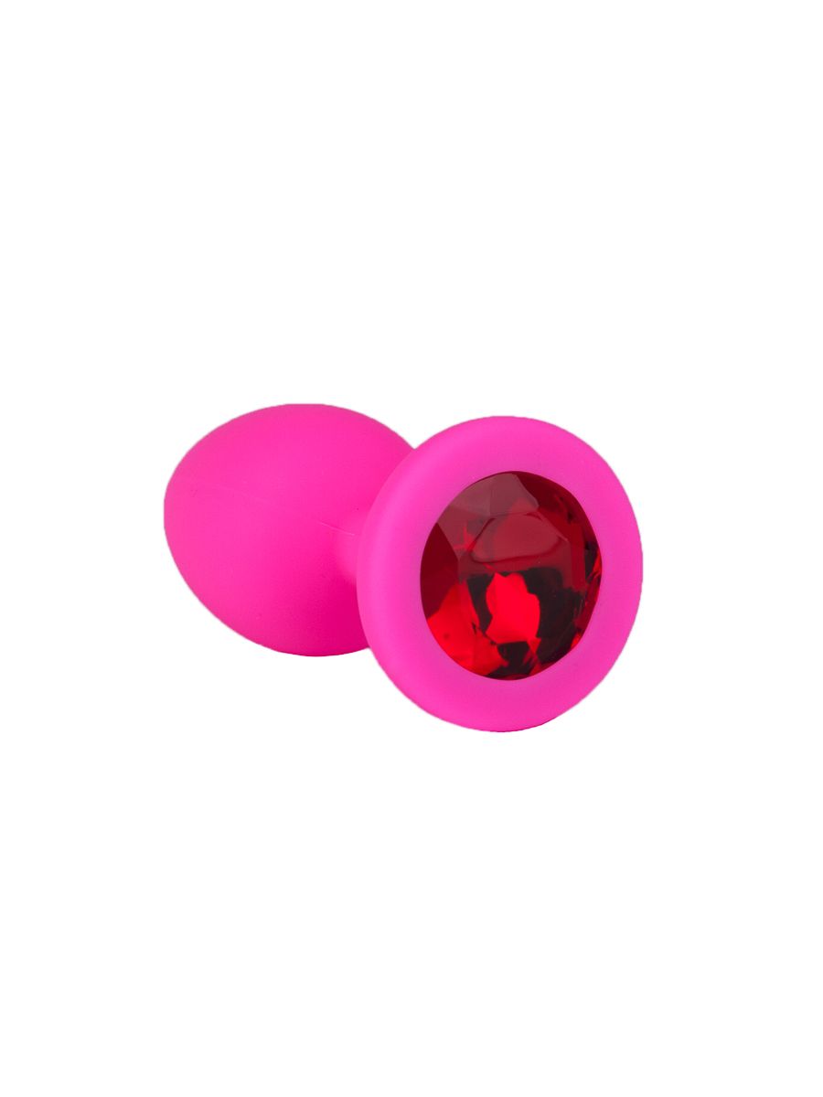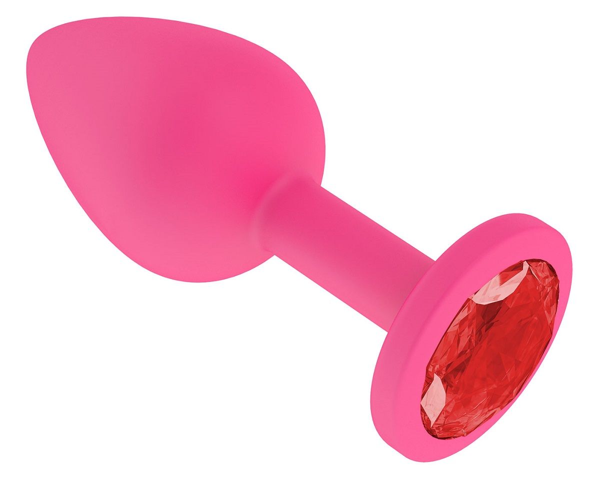 Купить Розовая силиконовая анальная втулка с красным кристаллом - 7,3 см. Джага-Джага по лучшей цене с доставкой - секс-шоп Ynunu.ru