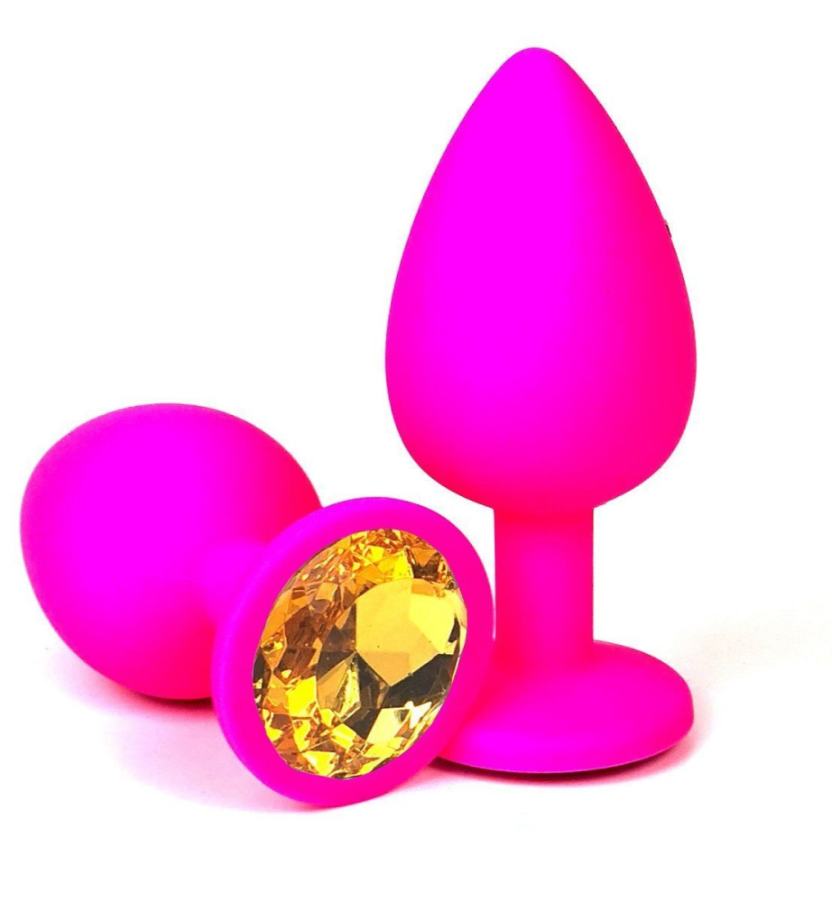 Розовая силиконовая пробка с оранжевым кристаллом - 10,5 см.