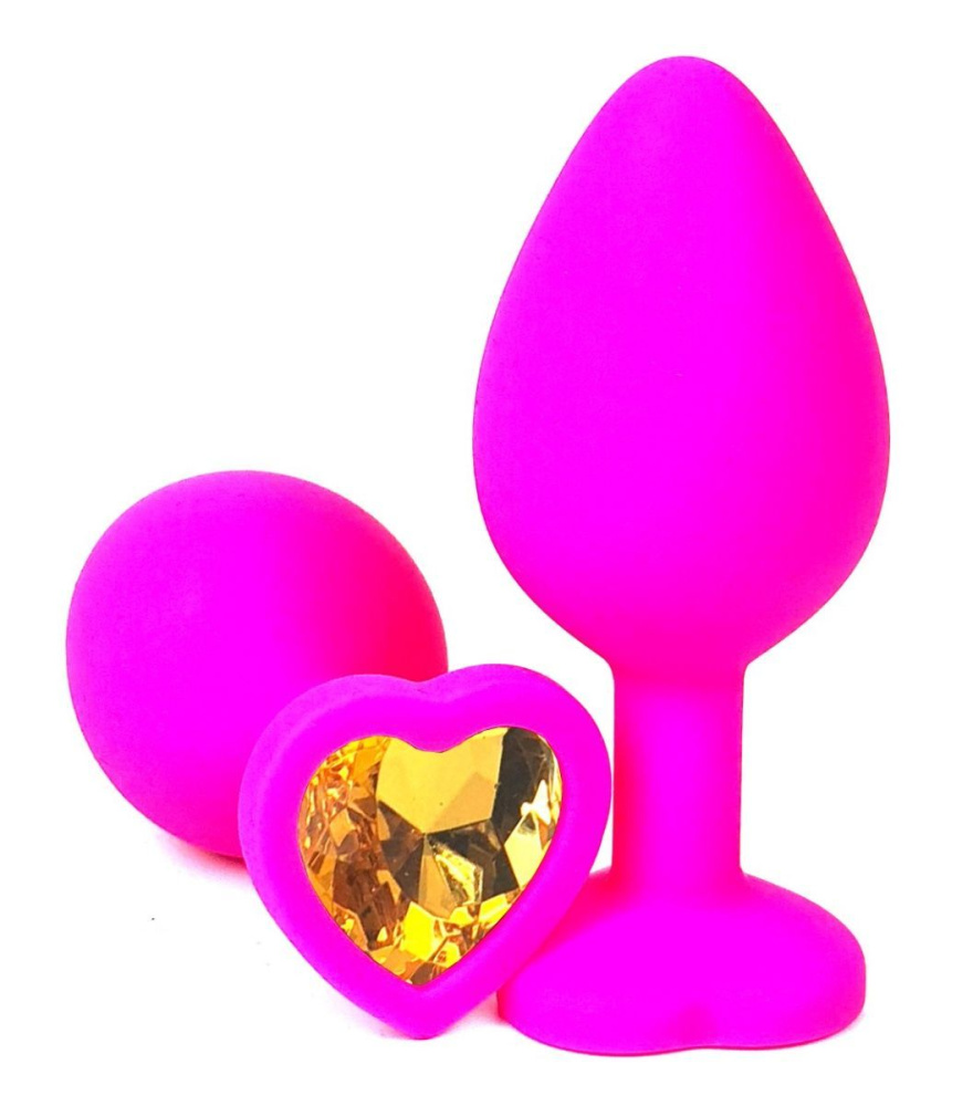 Розовая силиконовая пробка с оранжевым кристаллом-сердцем - 10,5 см.