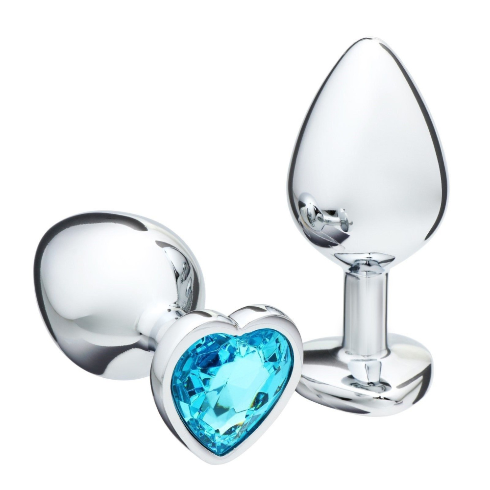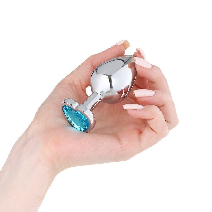 Купить Серебристая анальная пробка с голубым кристаллом - 8 см. Сима-Ленд по лучшей цене с доставкой - секс-шоп Ynunu.ru